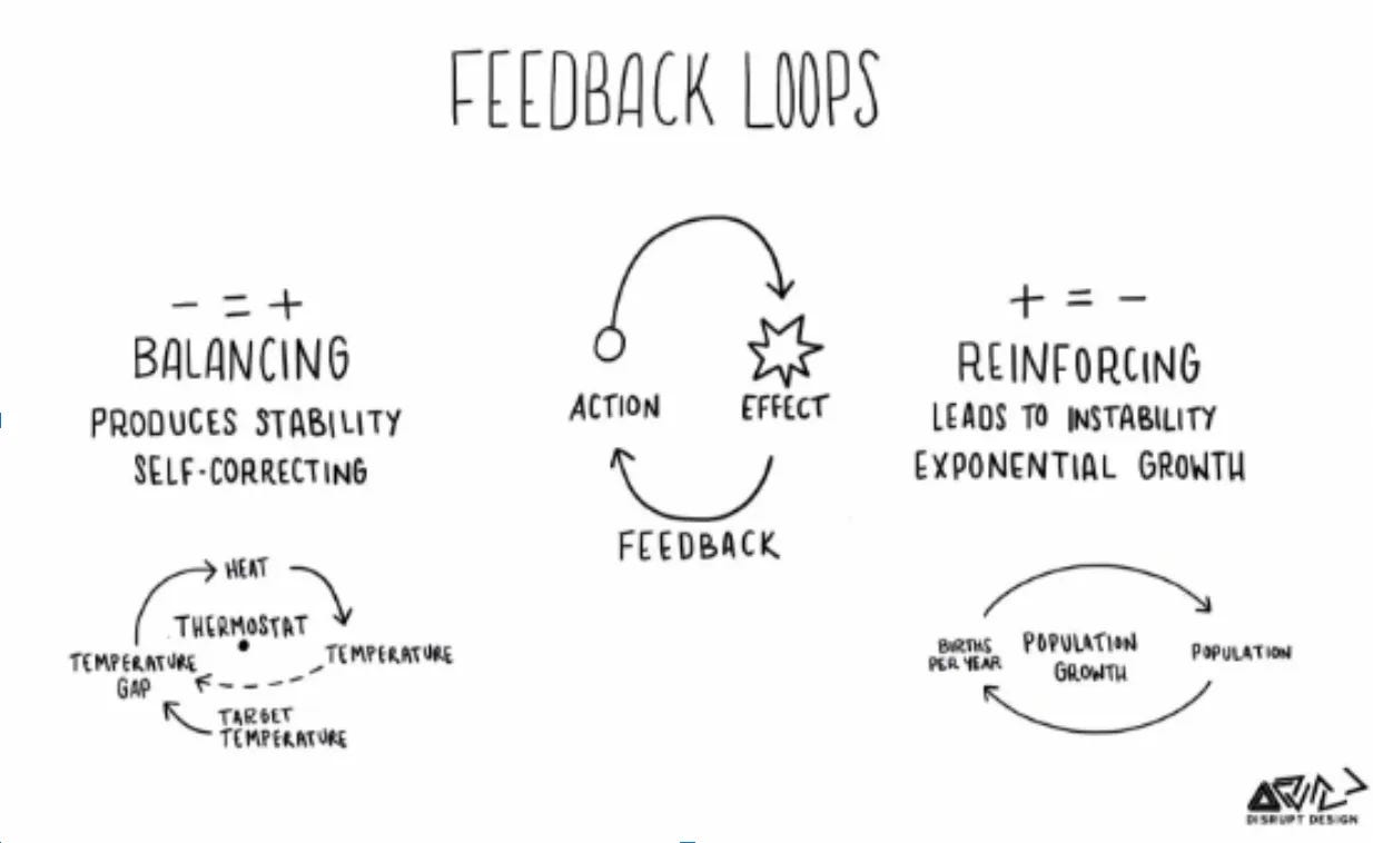 We’ve grown up being taught to think in linear ways. We’re taught that the worlds unfolds and exists in straight lines. We see a point A and we see a direction towards point B and then point B leads to point C point C leads to point D this continuation of events. But in reality, we live in a world of circles and circular relationships. So, A influences B, B influences C and C influences A and A influences B over and over and over again. These are called feedback loops and it’s a scientific term.